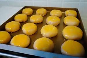 收口向下。刷上蛋黄液。