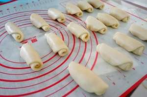 用保鲜膜盖好,静置15分钟。再次擀小长条、卷起。再静置15分钟。