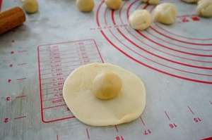 将牛奶、黄油、玉米淀粉、白糖 混合用中小火加热,并且用筷子不停搅拌。一开始是液态,到后面随着搅拌很快会变得浓稠。关火。随后加入椰蓉搅拌均匀。将椰蓉馅包入皮。