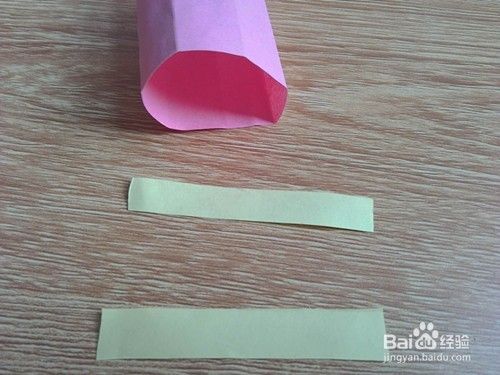 将黄色卡纸的另一半折叠,折成一个大概1mm的长条。