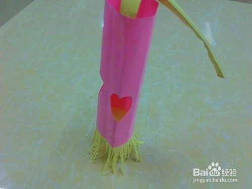 将长条粘在灯笼的筒体上,纸灯笼做好了。
