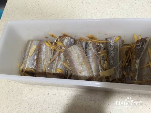 处理好的带鱼加步骤2的腌料拌匀,放保鲜盒里冰箱冷藏腌制几个小时。