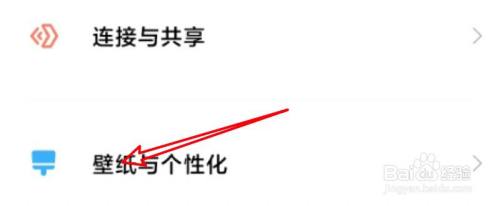 在设置页面,点击壁纸与个性化选项。