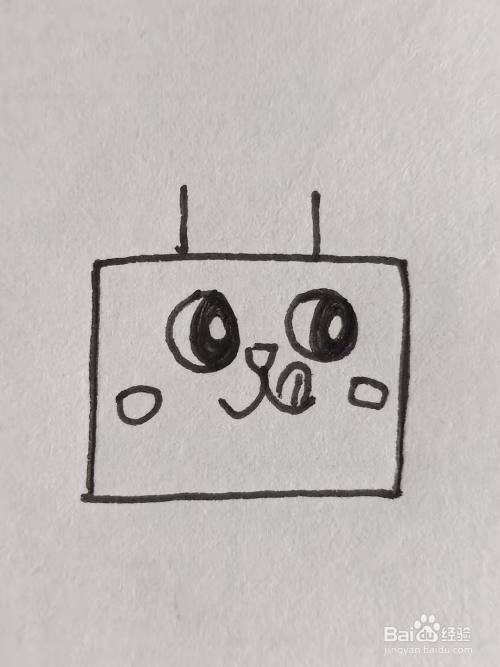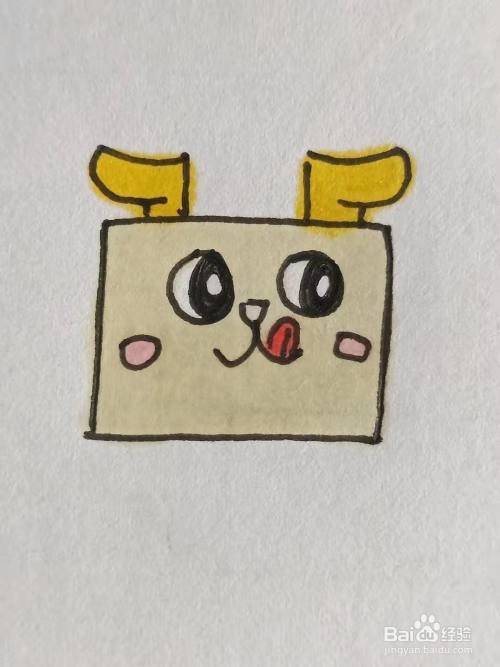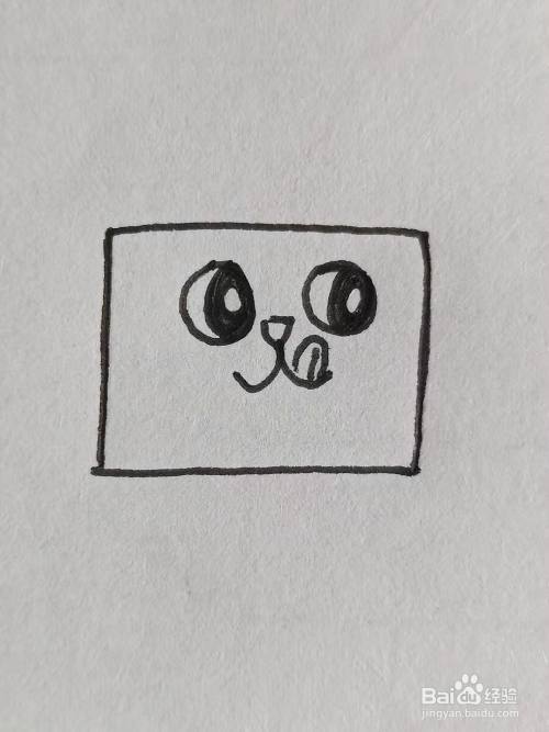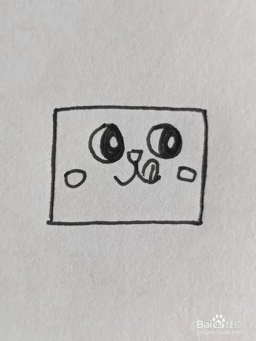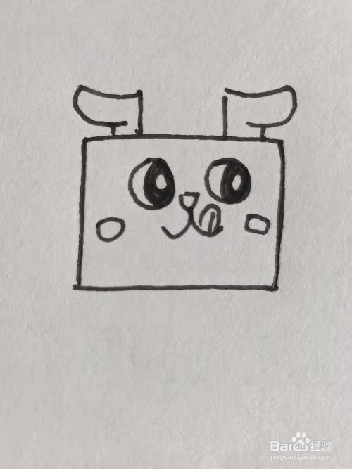 嘴巴上面画半圆和竖线,组成小狗的舌头。