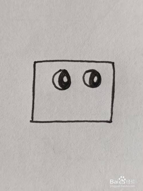 用勾线笔在小狗眼睛的两边画两个椭圆形,作为小狗的脸蛋。