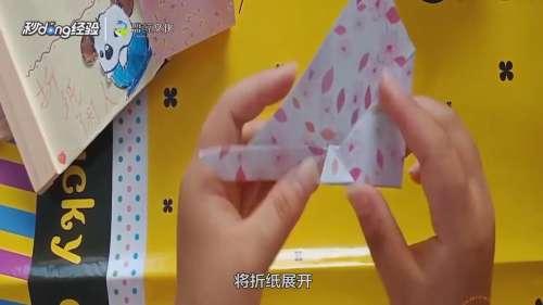 9将折纸展开,沿折痕将折纸的两侧往里收。