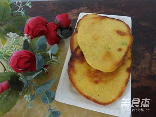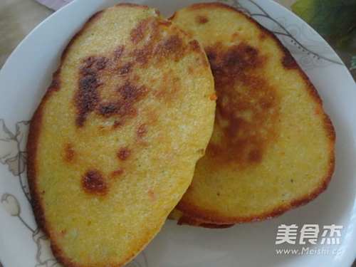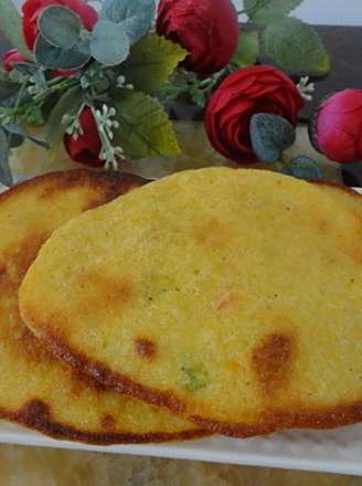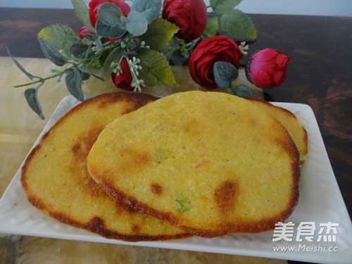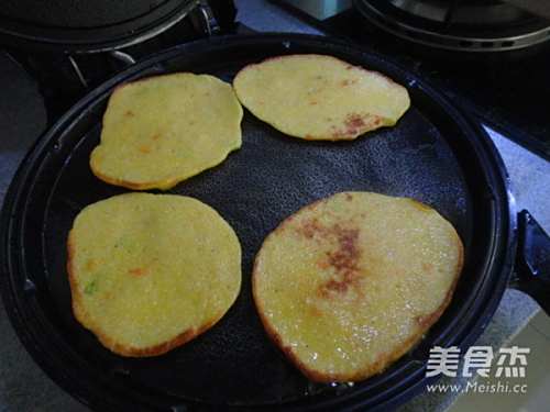 早晨磨了豆浆,在做一点干粮给儿子做早点。我在玉米面中加入鸡蛋、白面,还加了胡萝卜丁、葱花和适量的盐末,用电饼铛烙熟,金黄、咸香的玉米饼就好了。