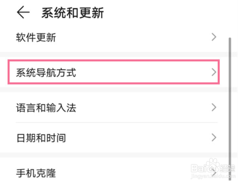 2、点击【系统导航方式】。