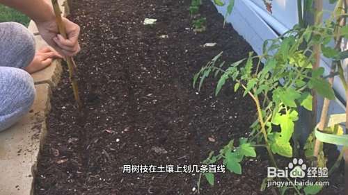 用树枝在土壤上划几条直线,让大蒜保持一条直线,大蒜之间的距离一个拳头左右。
