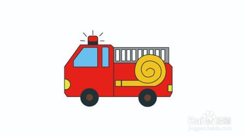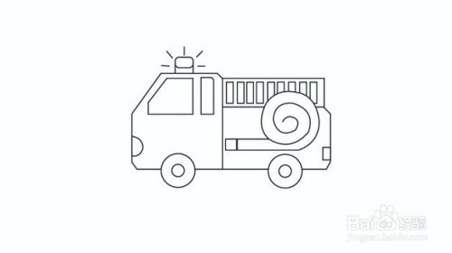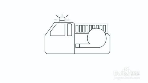 然后画出消防车上的装饰和碰水设施,再画出报警灯