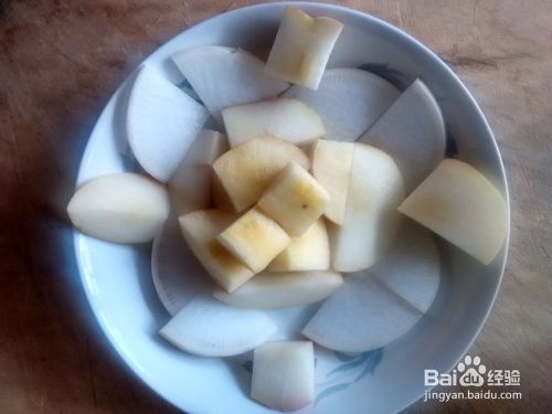 将苹果切成小块。