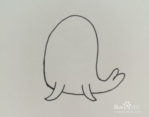 第三步,这里我们要画出海豹的前肢,在海豹的身子的下面,画出两个像外分开的类似于小月牙的形状,具体如下图所示。