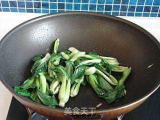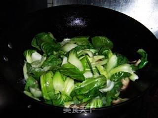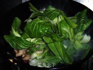 放入油菜翻炒至出水。