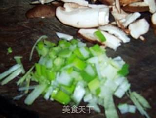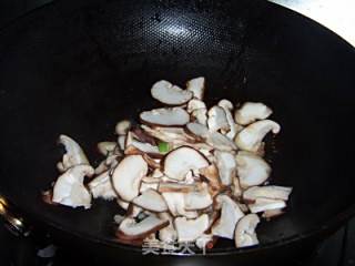 下入香菇片翻炒均匀