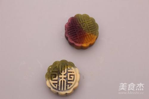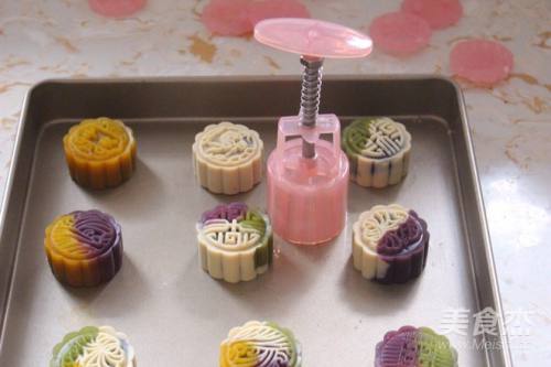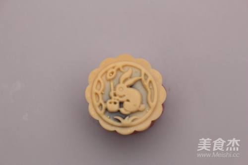 8放进月饼模具,用手按压平,然后在合适的地方按压模具即可