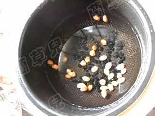 3黑豆、花生放入饭煲中,加入适量冷水,炖煮至熟烂;盛起备用。