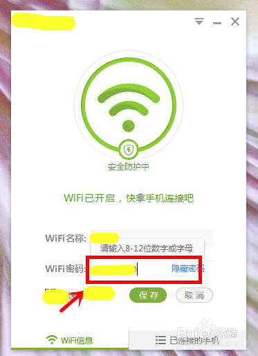 当我们点击WiFi密码后的文本框时,我们同样能够看到输入密码的提示,我们输入想要设置的密码即可;