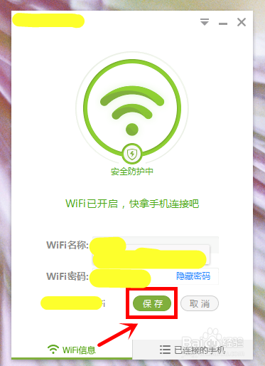 当我们修改好WiFi名称和密码后,我们选择页面中的“保存”按键即可;