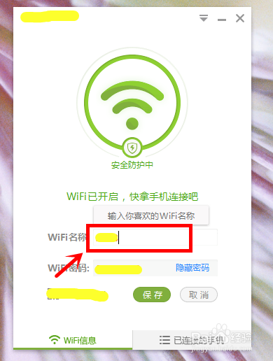 我们点击WiFi名称后的文本框,可以看到“输入你喜欢的WiFi名称”提示,我们输入自己想要的名称;