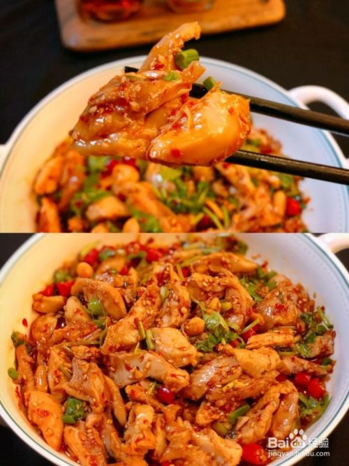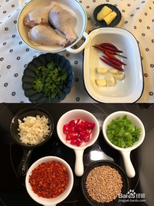 【食材】鸡腿3个,小米辣5个,大蒜5瓣,姜一块,料酒2勺,花椒粉油1勺,辣椒面1勺,生抽2勺,香醋1勺,蚝油1,白糖1小勺,芝麻1勺,葱花和香菜,花生碎适量