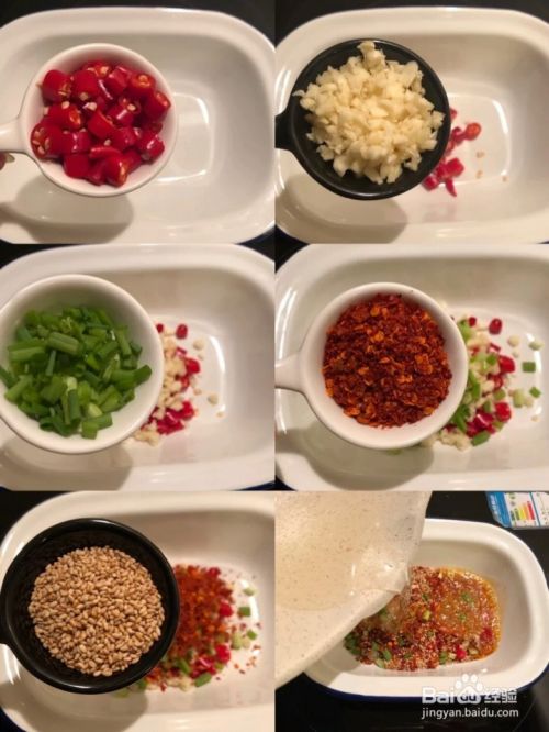4碗里放辣椒面,小米辣,芝麻,葱花,泼入热油,滋滋滋好香哦!