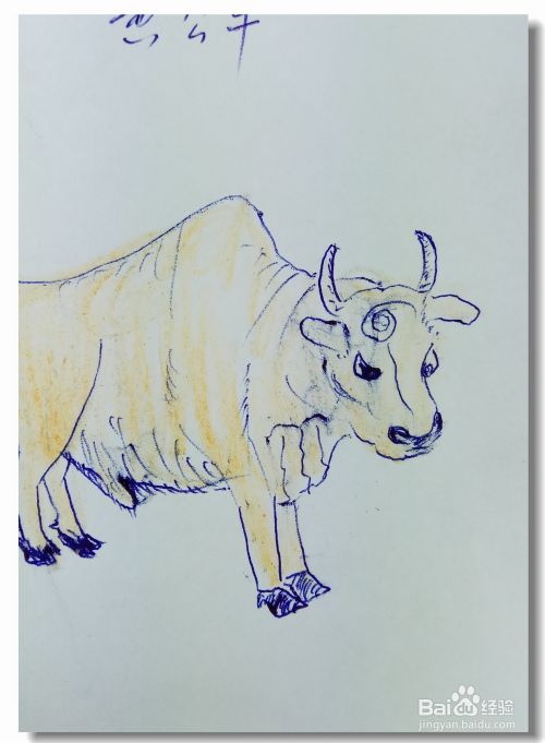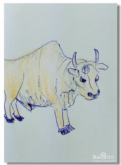 最后用黄色的蜡笔涂出牛身上的颜色,简笔画就画好了。