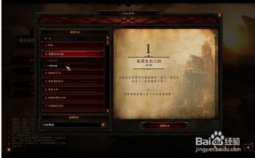 选择任务变更,找到第一章-第二节“凯恩生死之谜”的“探索地窖”(即任务章节1-2-2),开始游戏,传送门选择“旧镇废墟”