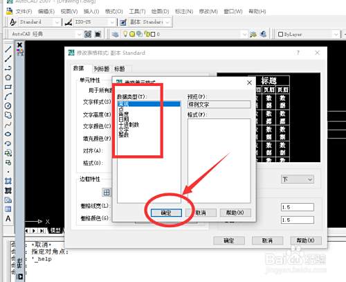 在“表格单元格式”对话框中,为选定的表格行设置数据类型、格式和其他选项。单击“确定”。 AUTOCAD定义表格行的数据类型和格式就设置成功;