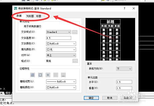 在“新建表格样式”对话框或“修改表格样式”对话框中,单击“数据”、“列标题”或“标题”选项卡。