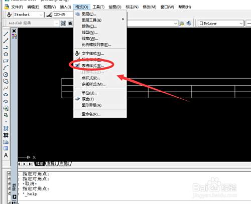 在CAD菜单栏【格式】下拉菜单中选择【表格样式】并点击打开