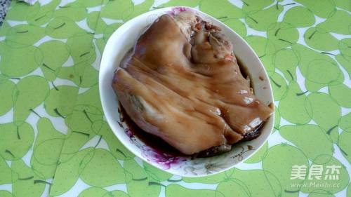 6放入盘中炒勺放入煮肘子汤,用水淀粉勾芡浇在肘子上就好了