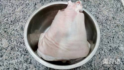 4锅中烧水放入调料水开后放料酒,酱油放入冰糖和肘子煮一个小时放盐继续煮半小时