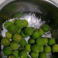 用盐揉搓表面进行杀青,在青梅肉上用刀划一下,之后泡在盐水里一整日