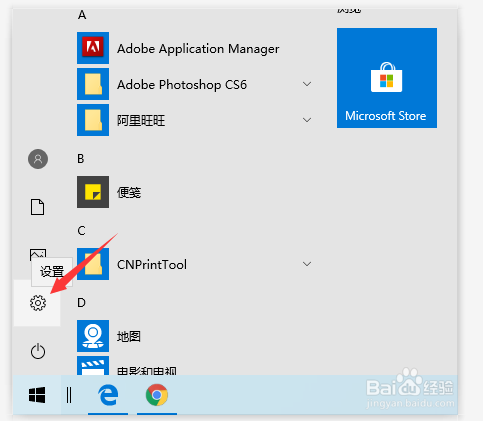 点击开始菜单,在弹出的菜单里选择“设置”(小齿轮形状)选项。