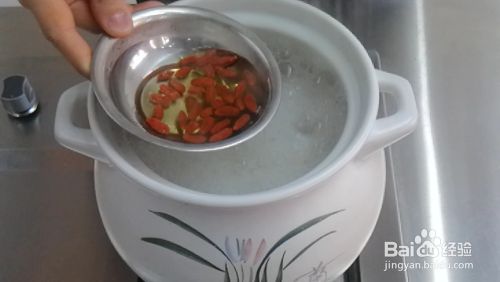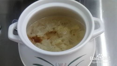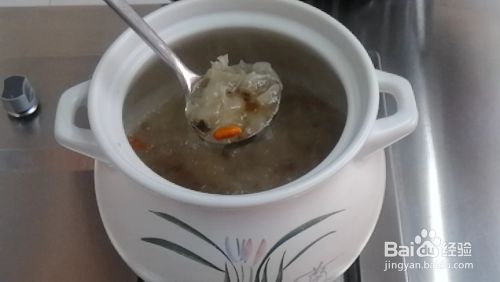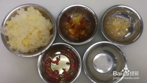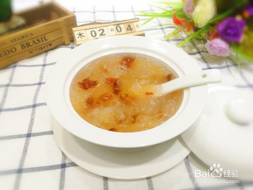 准备好所需原料,提前12小时将桃胶、雪莲籽浸泡在清水中;银耳提前1小时浸泡在清水中;枸杞提前10分钟浸泡在热水中;桃胶、雪莲籽、雪莲籽浸泡后,将杂质清理干净;