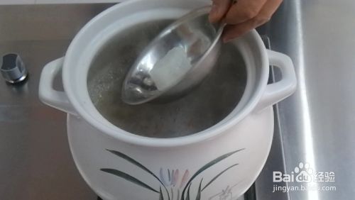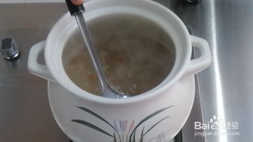 将煲制好的汤饮装入甜品盅当中,盛装的时候,要搅匀后再装。