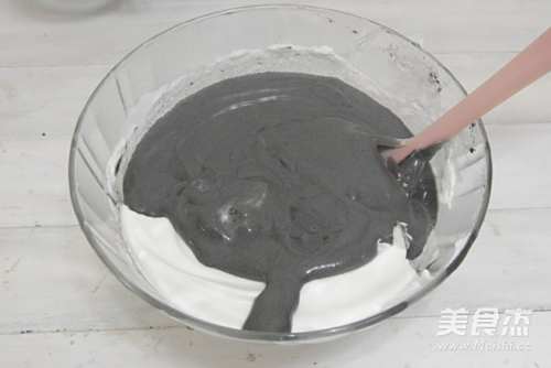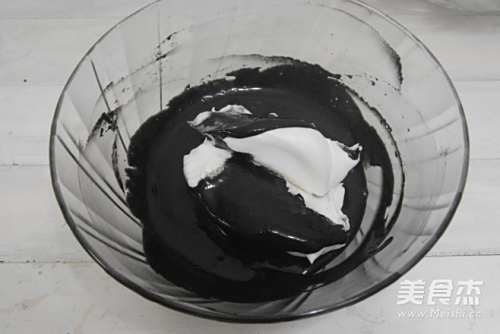 9把拌好的竹炭蛋糊倒回蛋白内,翻拌均匀