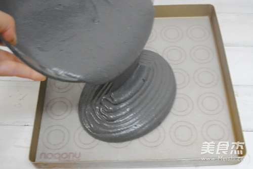 8取1/3蛋白放入竹炭糊内,翻拌均匀