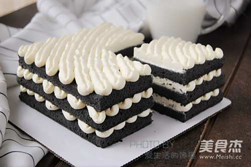 黑白配,另一种美丽,加入了苏泊尔醇浆机出品的玉米汁,因为很细腻,所以做出的蛋糕片也是很细腻的
