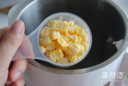1三量杯甜玉米放入苏泊尔醇浆机内,加入到刻度700ML的清水