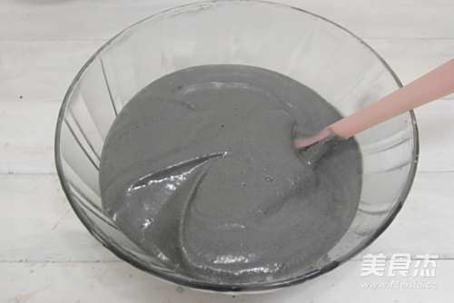 10拌好的蛋糕糊,加了竹炭粉的蛋糕糊会容易消泡些,拌的时候手要轻柔,速度也相对快一些