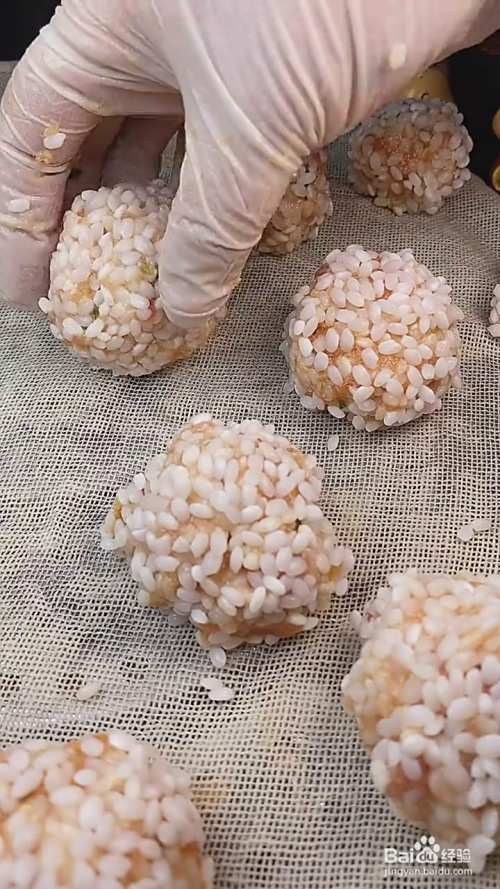 肉馅揉成丸子,裹上糯米上锅蒸熟即可