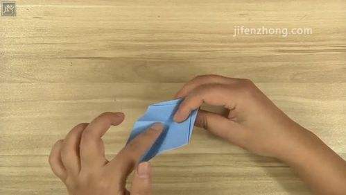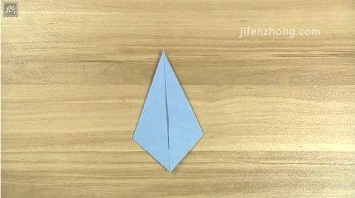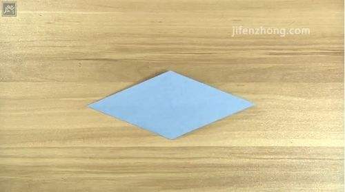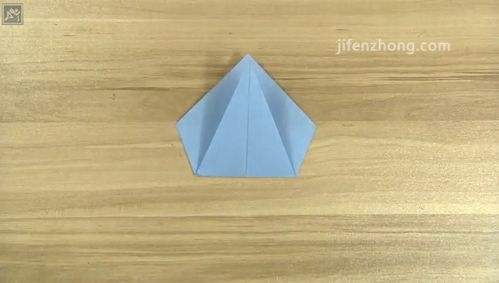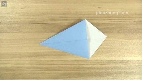 4将纸再翻面,从左上角纸片下面打开,对齐对角线折齐。右边重复,得到这样的形状。