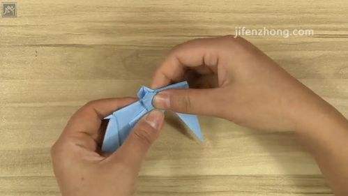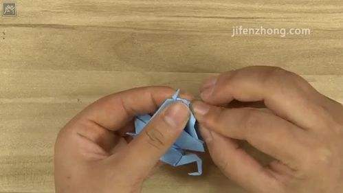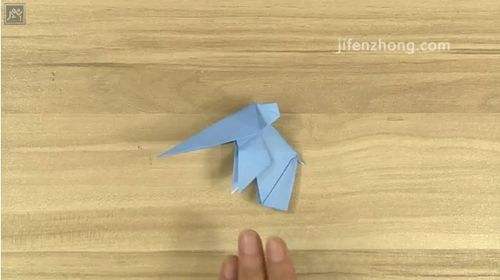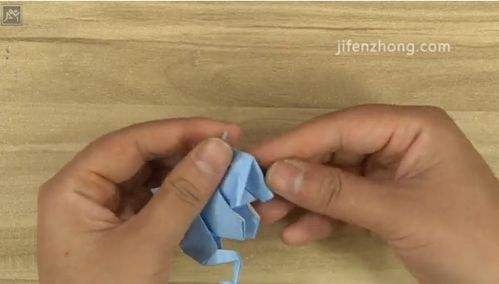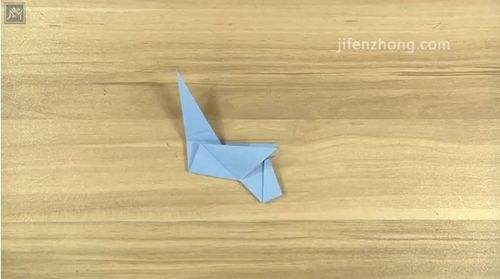 26将前腿的纸片尖端往上折,留下折痕后作内翻折。反面相同。