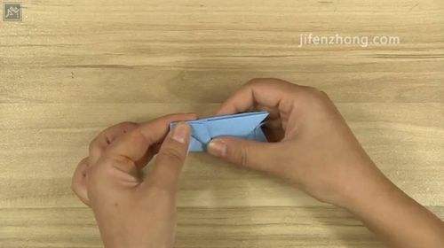 17将外层的小角沿纸的最上沿折齐,展开后沿折痕作内翻折。反面相同。