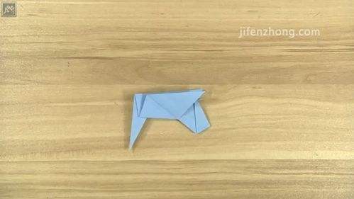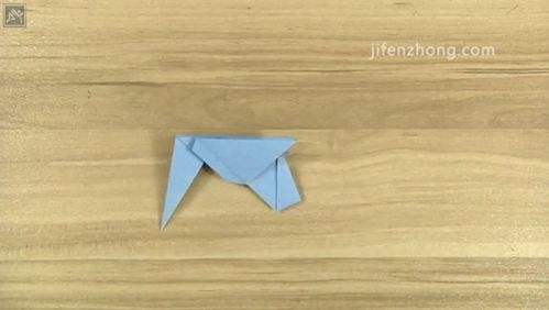 27按照前腿的长度将后腿往上折,沿折痕作内翻折。注意前后腿的下缘在同一平面上。