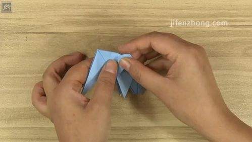 21将左侧的尖角从两层纸中间打开,向下压平,做成大象的脸。