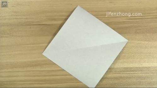 1准备一张正方形纸,白色面朝上,角对角对折后展开,留下对角线。