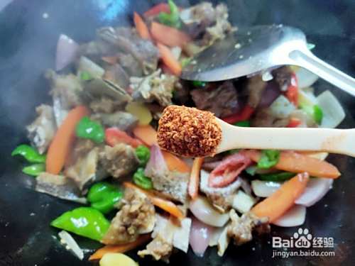 再加1小勺白胡椒粉。混合翻炒一两分钟。可以尝下够不够味,根据自己的口味适当再加点调料;