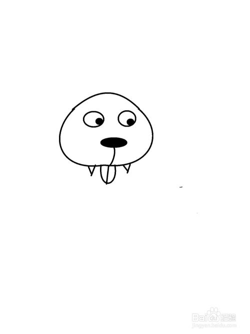 2 把伸出的舌头和尖尖的牙齿画出来,再画出耳朵。